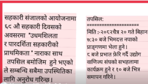 छ । सहकारी सञ्जालका अध्यक्ष ईश्वरी प्रसाद खरेलल दिवसको अवसर पारी प्रभात फेरि र अन्र्तक्रिया कार्यक्रम गरिने जानकारी दिए ।