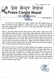 महेन्द्रनगर । नेकपा सम्बद्ध प्रेस सेन्टर नेपालले समेत पत्रकार बिमल धामीमाथि मुद्दा चलाउनु दुःखद भएको उल्लेख भन्दै विज्ञप्ति निकालेको छ ।